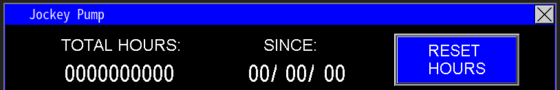 At the top of the screen (Image 1.2), the Motor Data for the Jockey Pump displays the accumulated run time while the motor is active. If the motor or pump is replaced due to a breakdown, the Reset Hours button allows you to reset the Total Hours to zero. Upon pressing this button, the Since date updates to the current date, providing an effective way to track the operational lifespan of each pump or motor.