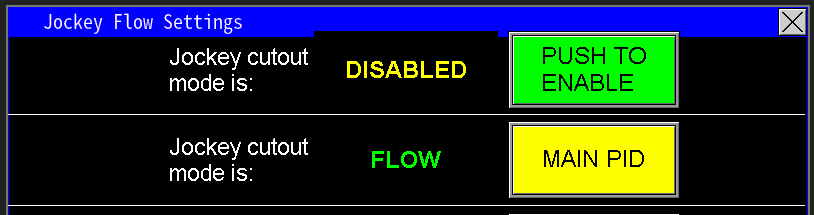 Flow cutout directs to the screen that allows the control of when the jockey should and should not run based on flow (image 1.5).