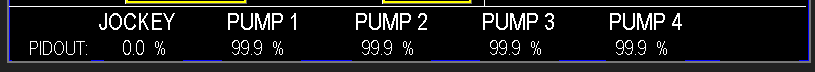 At the bottom of the screen (Image 3.1), the PID readout displays real-time data for all pumps. When calibrating the Sleep by PID setting, comparing the pump speed with the PLC’s output to the drive can help determine the optimal value for the Sleep by PID Output setting, as shown in Image 2.8. This ensures precise configuration for entering sleep mode efficiently.