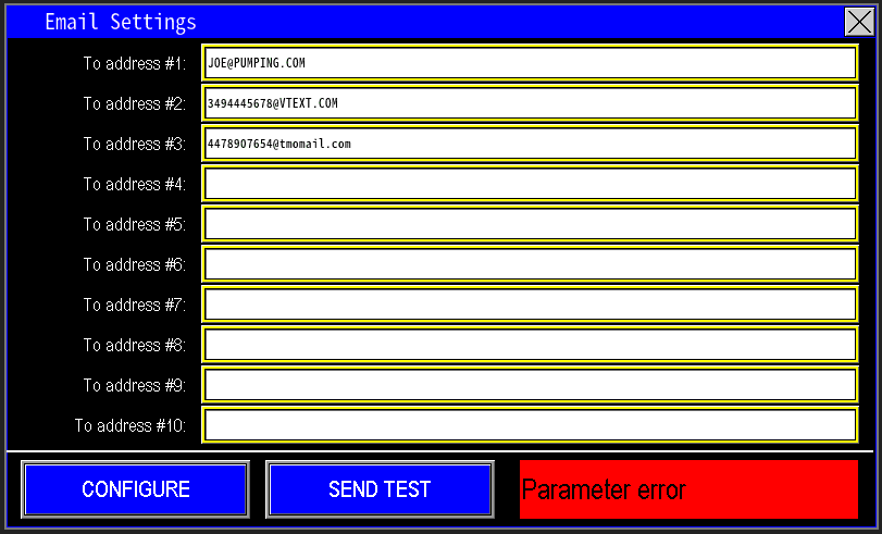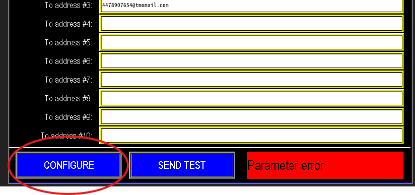 When accessing the email screen, the primary section that typically requires configuration is the email input field (image 1.2). Enter the desired email address and click “Send Test” (Image 1.3). The status bar at the bottom right will inform you whether the test was successful or if an error occurred. If an error does occur and the system status shows something like image 1.4, see below under “Configure” for those settings. Once you receive a successful test message, your email setup is complete. After this, the system will automatically send email notifications for all fault events to all addresses entered.