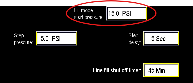 When fill mode is enabled, the Start Pressure setting determines the pressure threshold at which the system switches into line fill mode to protect downstream components. Setting this value according to station specifications is important for proper operation.
