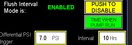 The differential PSI trigger (Image 1.9) is adjustable, allowing operators to set the pressure difference threshold. When the PLC detects that the pressure differential exceeds this setpoint, it starts a delay timer. If the pressure difference remains above the setpoint for the duration of this timer, the PLC will automatically initiate the filter flush, ensuring continuous monitoring and eliminating dependence on the mechanical switch.