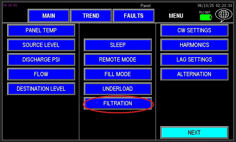 To adjust specific parameters or setpoints for an individual filter, select that filter from the list and access its detailed settings. These can also be accessed quickly from the main screen by clicking the filter button (Image 1.6). These can also be configured into filter groups as well. This is configured in the Admin Section which is password protected.
