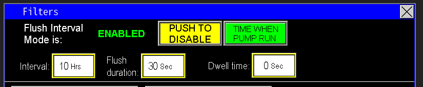 In systems with two filters, each filter will have its own dwell time and flush duration settings (image 2.3).