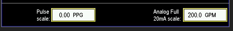 Next, zero the mA Scale—this activates the pulse measurement mode. If the mA scale is not zeroed, pulse readings will not function correctly. Once configured, the system converts incoming pulses into flow rates, displaying the flow in GPM on the main screen of the HMI (Image 1.4).