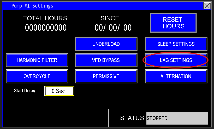 Lag Pumps (Image 3.1) are the main pumps that activate after the lead main pump is running but unable to meet the station’s water demand. These settings must be carefully configured based on the main pumps’ performance and the station’s required flow. Improper configuration can cause high pressure spikes when a lag pump starts, potentially affecting system stability. Understanding and accurately setting these parameters is critical for smooth operation.