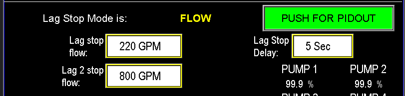 The Lag Pump Stop process is governed by two modes: PID Output and Flow (Images 3.7 & 3.8).