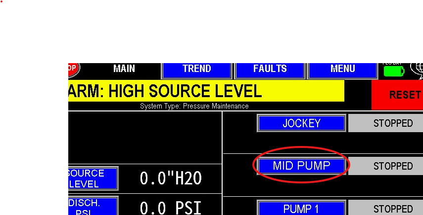 The Intermediate pump settings are accessed through the main screen (image 1.1). Image 1.2 contains all the settings pertaining to the Intermediate pump. This screen follows the same basic outline as the Jockey pump with very few differences.