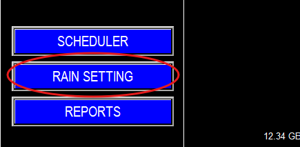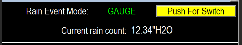 In the Rain Settings screen, tell the automation whether or not it is Gauge, or switch that the PLC is monitoring (image 1.3). This will tell the PLC how to calculate the rainfall that is occurring and will display that number in the Current Rain Count display.