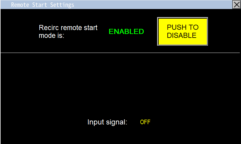 To access the Remote Mode Settings, navigate to the remote mode settings screen (Image 2.1). When Remote Mode is Enabled (Image 2.2), the recirculation pump waits for a start signal from an external controller (Image 2.3). Upon receiving the signal, the station activates the pump (Image 2.4). In this mode, the pump’s operation relies entirely on the external scheduler’s start command.