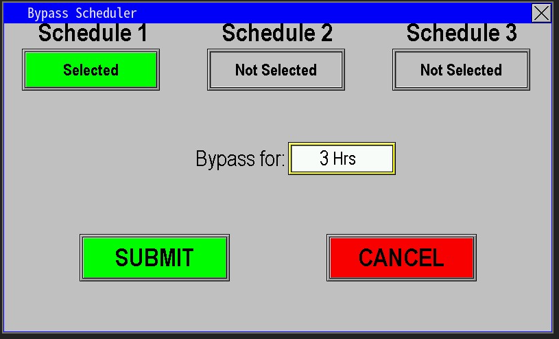 Example image 2.0: Bypassing Scheduler #1 for 3 hours will permit pump operation for that interval while leaving the original schedule unchanged.