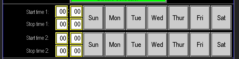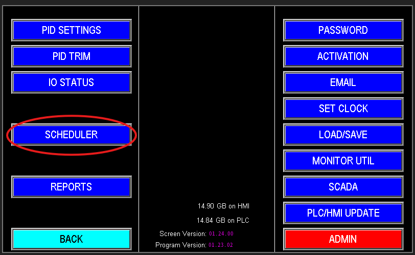 Use this section to configure the exact times the station will run—similar to programming a sprinkler controller. Before configuring, verify the HMI date and time are correct, as the scheduler operates from the panel clock (image 1.5).