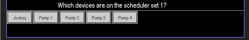 Select which pumps should run for the configured schedule (image 1.6). For each scheduler cycle, choose the device(s) (e.g., Main1, Main2, Jockey) that will operate. For example, if a single main pump can supply a zone, select only that pump for the schedule. If no devices are selected, no pumps will run for that scheduled event. Ensure device selections are configured during station setup.