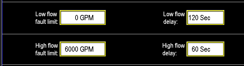 High Flow Fault: The system will fault and stop the station if the flow exceeds 6000 GPM continuously for 60 seconds. After this delay, the station will stop in order to prevent any damage from excessive flow.
